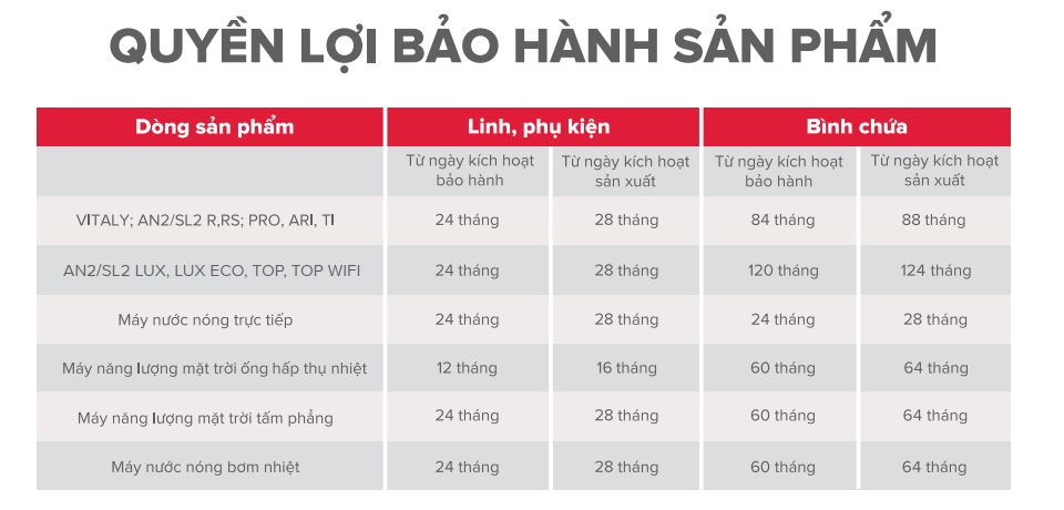 - Chất lượng vượt trội : 90 năm chuyên gia trong lĩnh vực máy nước nóng hàng đầu thế giới