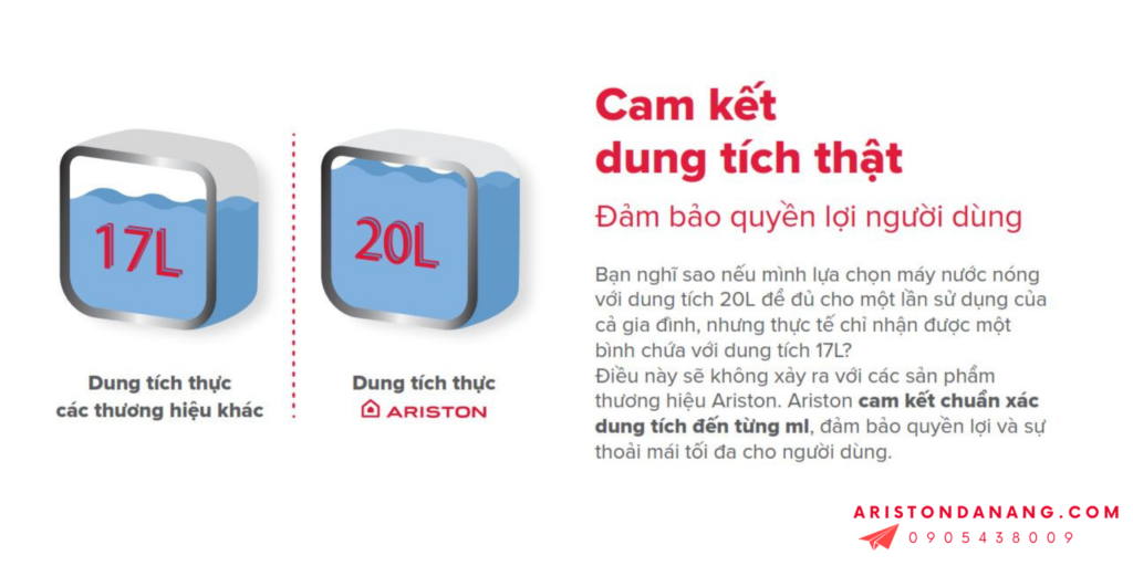- Ariston cam kết chuẩn xác dung tích đến từng ml, đảm bảo quyền lợi và sự thoải mái tối đa cho người dùng.