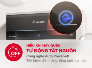 - Bình nước nóng ariston 30l wifi được trang bị công nghệ Auto Power-off tự động tắt máy khi không dùng sau một khoảng thời gian được chỉ định.